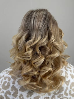 укладка волос со стайлинговыми средствами.